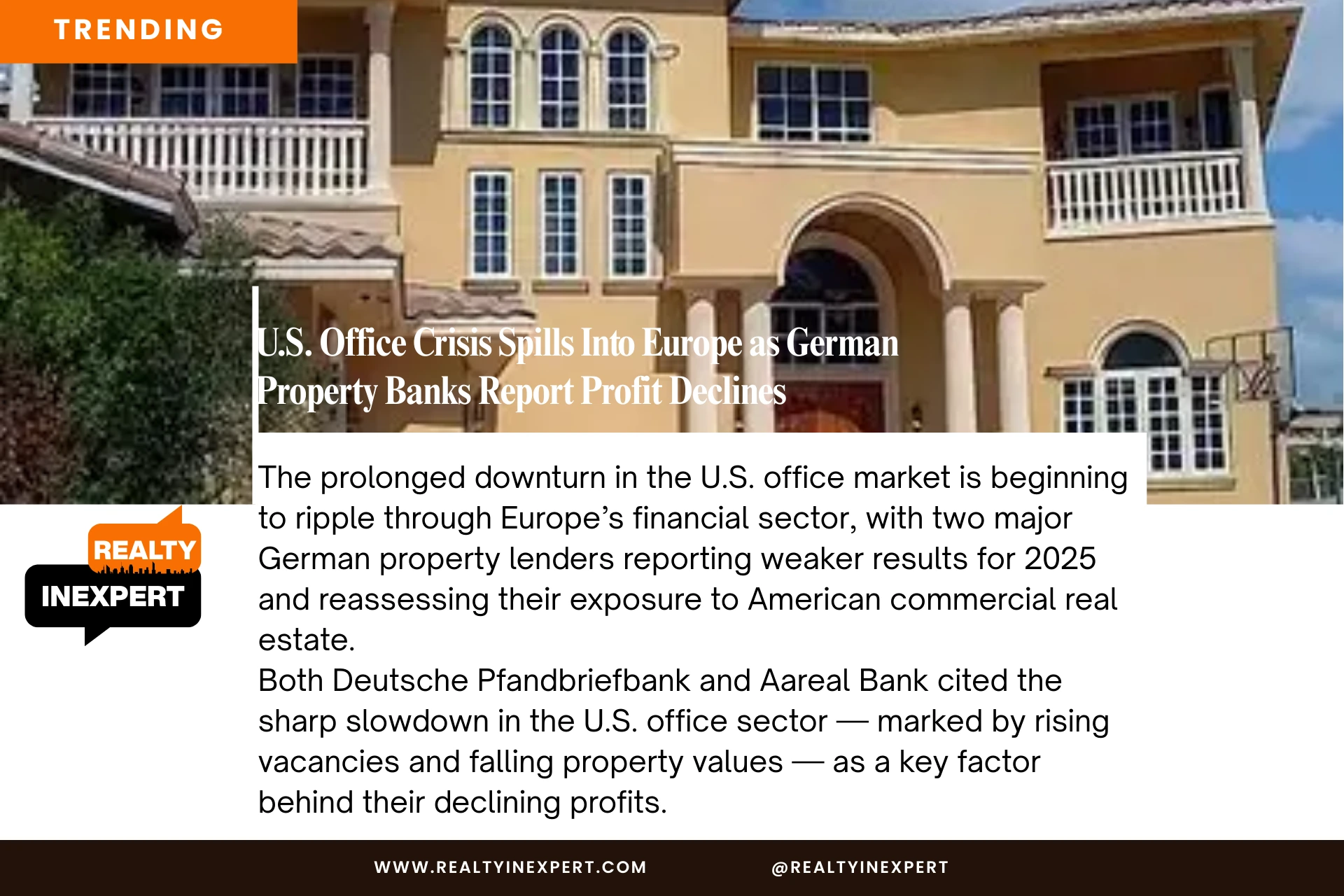 Both Deutsche Pfandbriefbank and Aareal Bank cited the sharp slowdown in the U.S. office sector — marked by rising vacancies and falling property values — as a key factor behind their declining profits.
