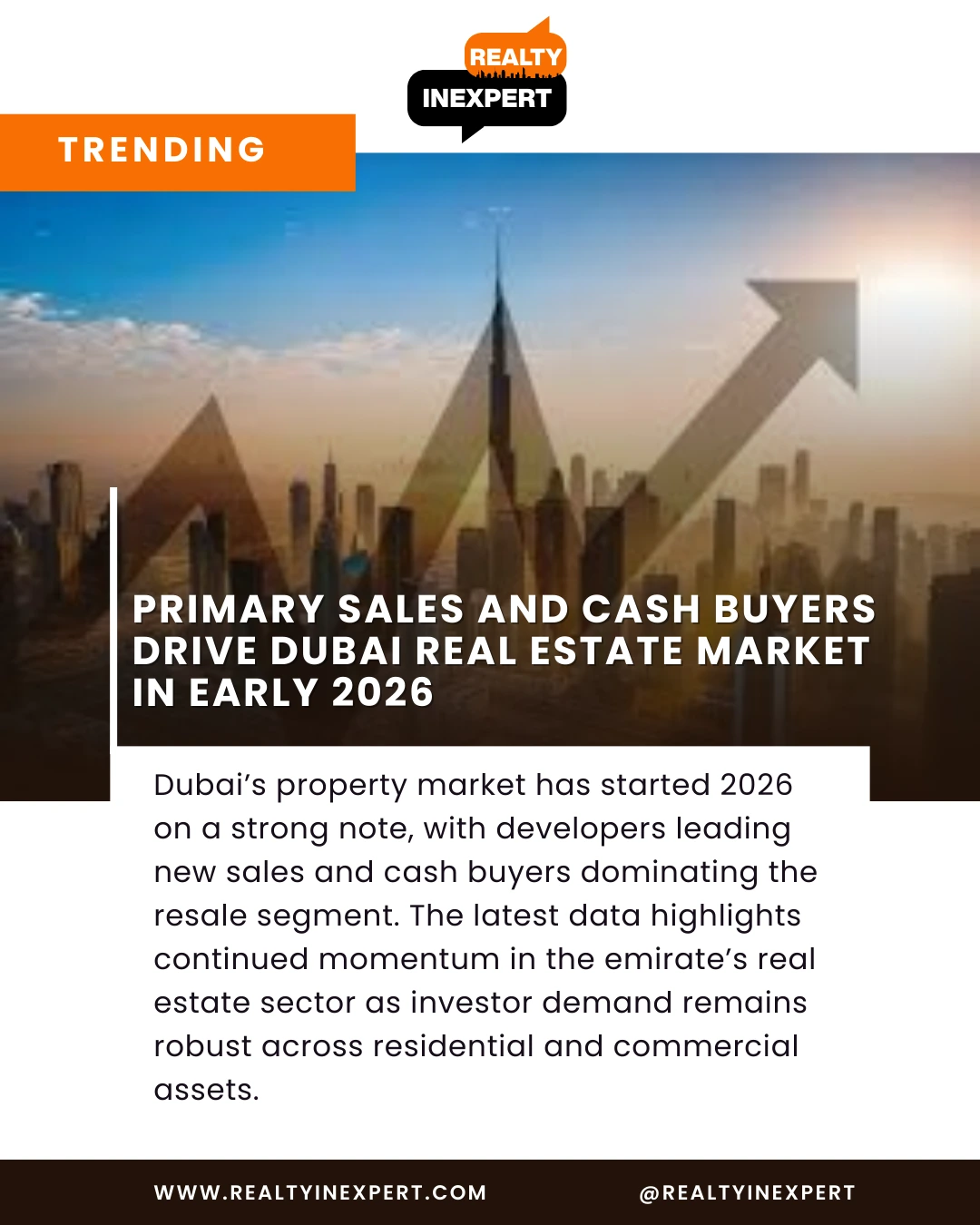 Dubai’s property market has started 2026 on a strong note, with developers leading new sales and cash buyers dominating the resale segment. The latest data highlights continued momentum in the emirate’s real estate sector as investor demand remains robust across residential and commercial assets.