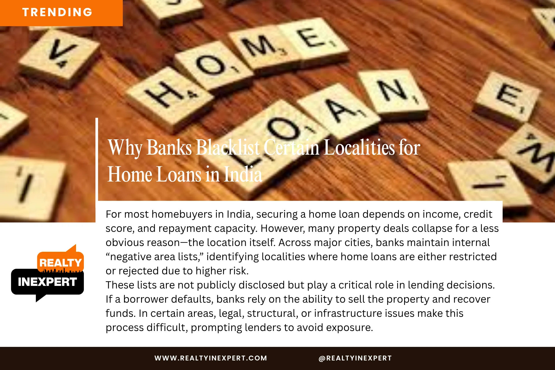For most homebuyers in India, securing a home loan depends on income, credit score, and repayment capacity. However, many property deals collapse for a less obvious reason—the location itself. Across major cities, banks maintain internal “negative area lists,” identifying localities where home loans are either restricted or rejected due to higher risk.