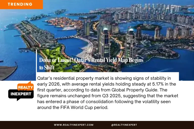 Qatar’s residential property market is showing signs of stability in early 2026, with average rental yields holding steady at 5.17% in the first quarter, according to data from Global Property Guide. The figure remains unchanged from Q3 2025, suggesting that the market has entered a phase of consolidation following the volatility seen around the FIFA World Cup period.