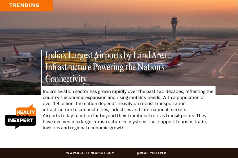 From massive greenfield developments to modernised aviation hubs, several Indian airports now span thousands of acres and handle millions of passengers annually. Here is a look at some of the largest airports in India by land area and the role they play in strengthening the country’s connectivity network.