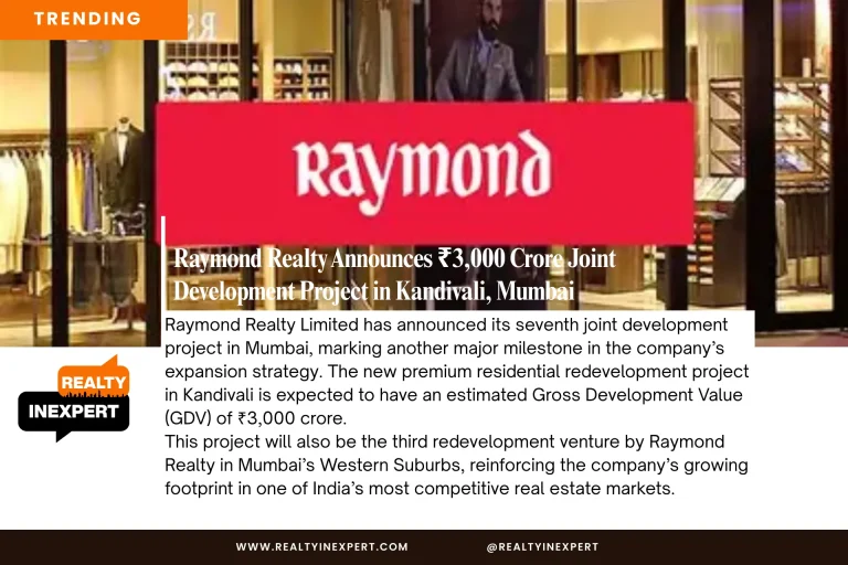 Raymond Realty Limited has announced its seventh joint development project in Mumbai, marking another major milestone in the company’s expansion strategy. The new premium residential redevelopment project in Kandivali is expected to have an estimated Gross Development Value (GDV) of ₹3,000 crore.
