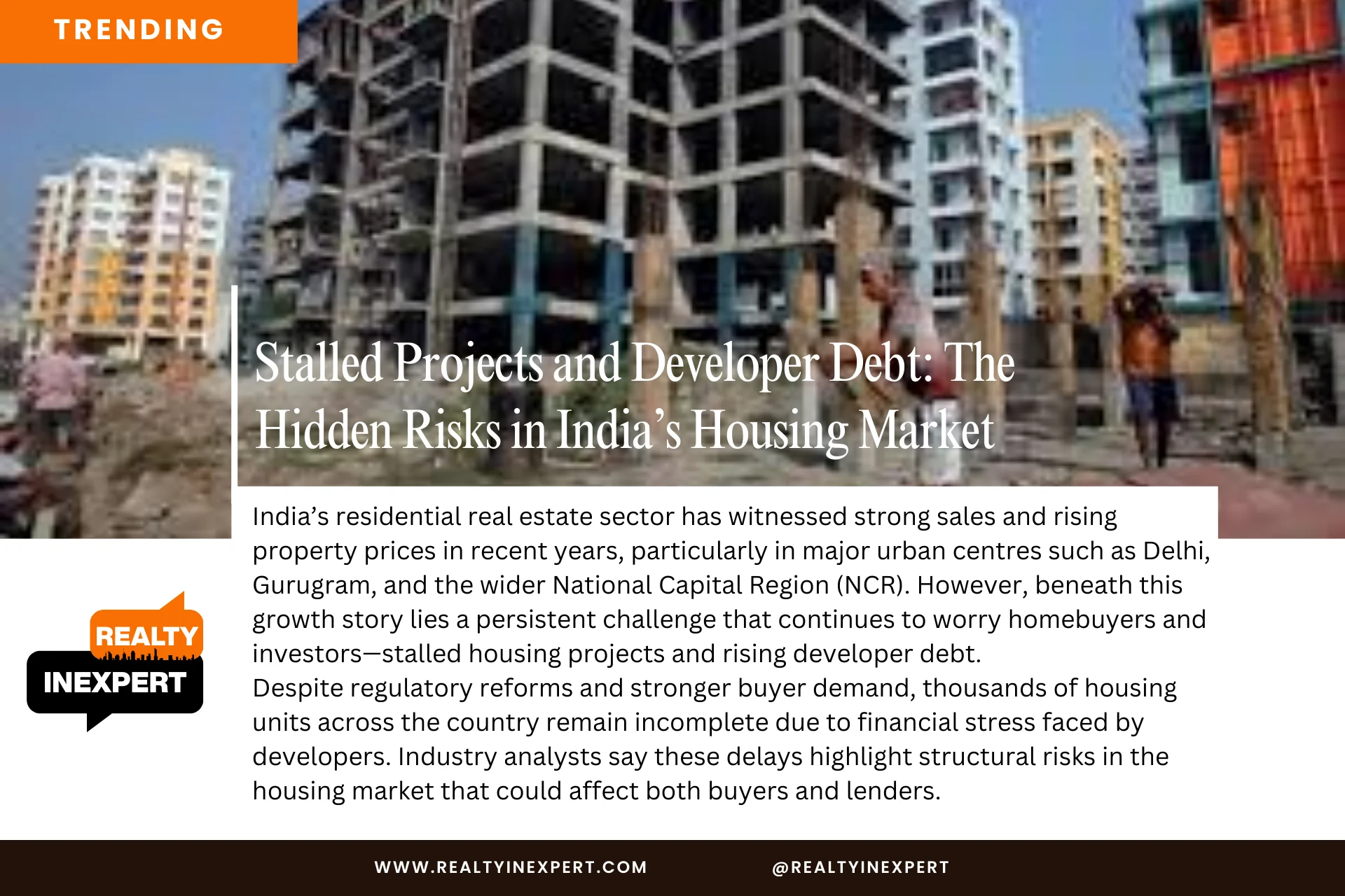 India’s residential real estate sector has witnessed strong sales and rising property prices in recent years, particularly in major urban centres such as Delhi, Gurugram, and the wider National Capital Region (NCR). However, beneath this growth story lies a persistent challenge that continues to worry homebuyers and investors—stalled housing projects and rising developer debt.