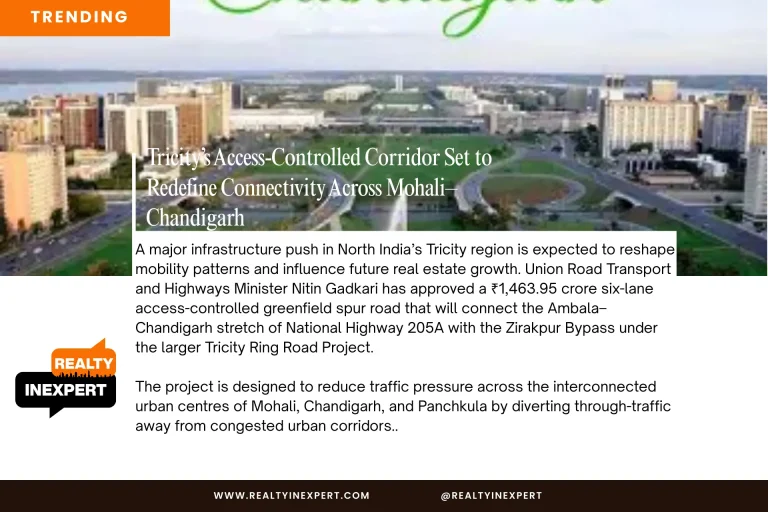 A major infrastructure push in North India’s Tricity region is expected to reshape mobility patterns and influence future real estate growth. Union Road Transport and Highways Minister Nitin Gadkari has approved a ₹1,463.95 crore six-lane access-controlled greenfield spur road that will connect the Ambala–Chandigarh stretch of National Highway 205A with the Zirakpur Bypass under the larger Tricity Ring Road Project.